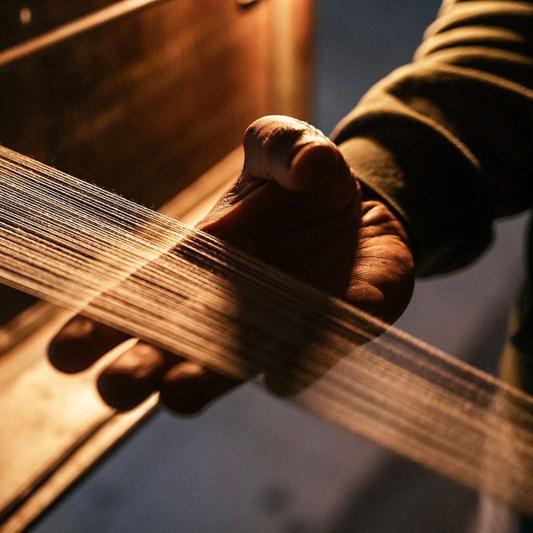 The tasks are distributed of collecting the fine cotton & linen fibres, warping the yarns, hand-weaving the fabrics and tying the tassels is distributed among family members to maintain their heritage and to transmit this incredibly valuable tradition over to further generations.
