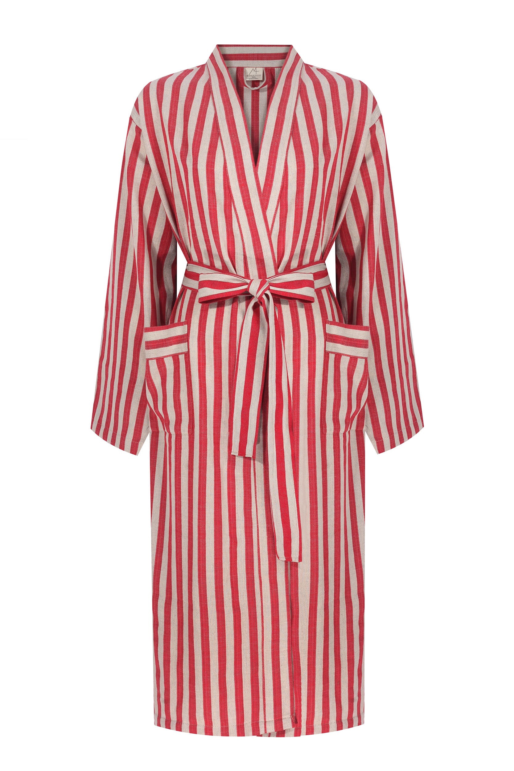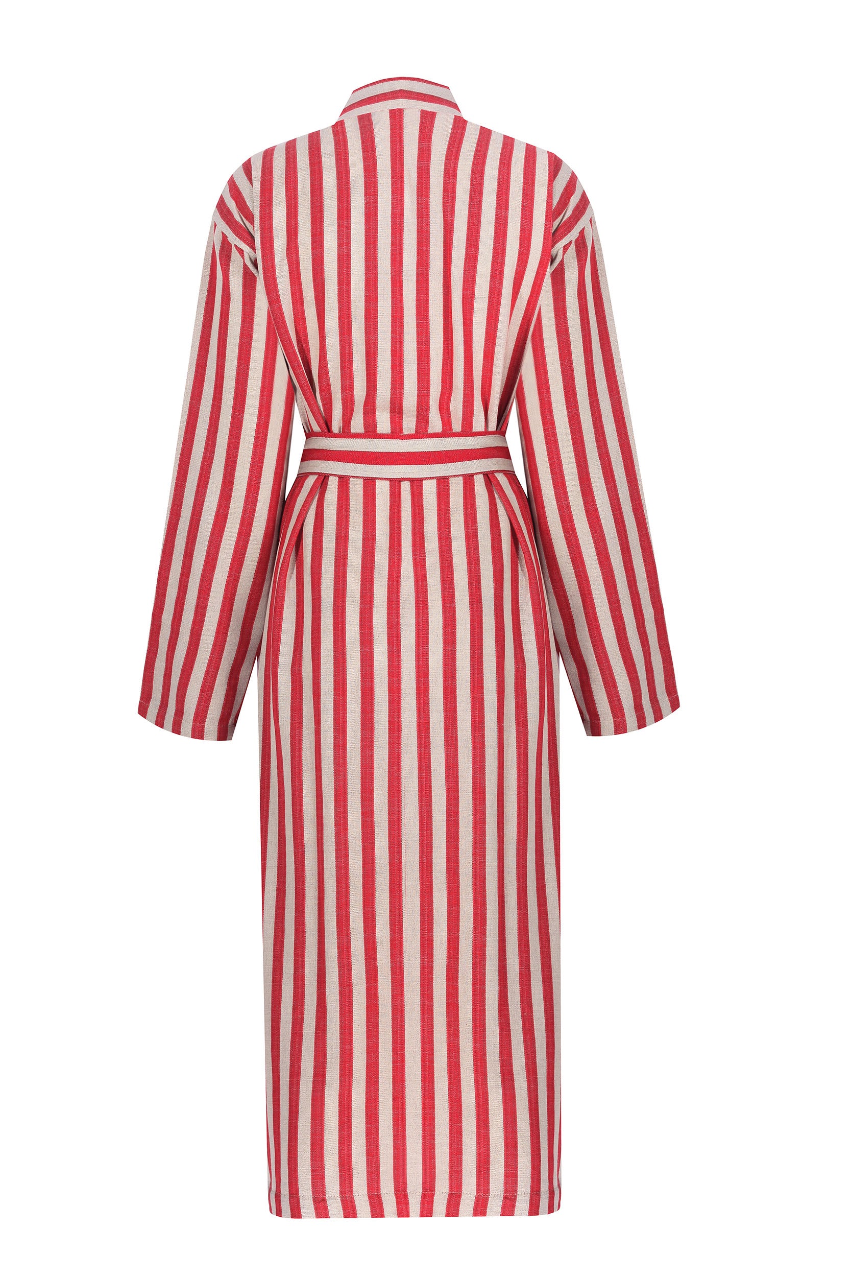 Inspired by Slim Aarons' 70s, Striped Red Robe carries the minimal lines of the contemporary era and the elegance of linen.